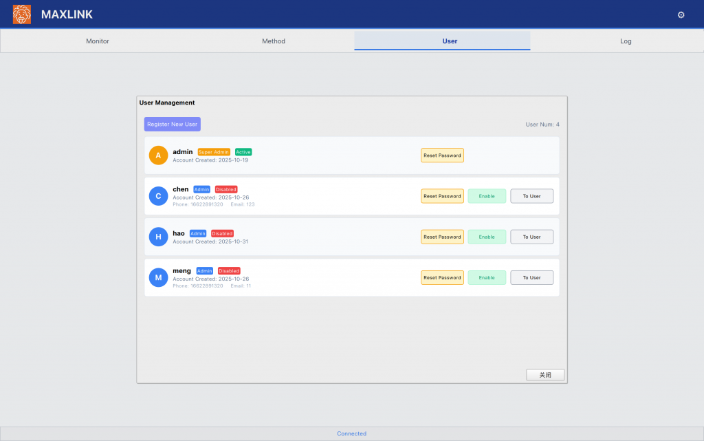 MAXLink通过智能化的设计理念和专业的功能实现,为企业提供安全可靠、合规高效的仪器设备控制解决方案。